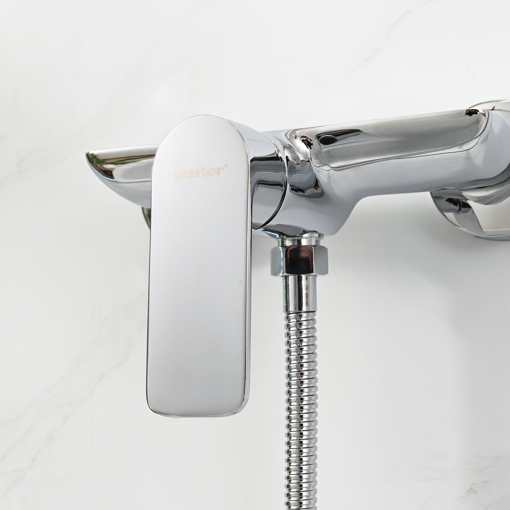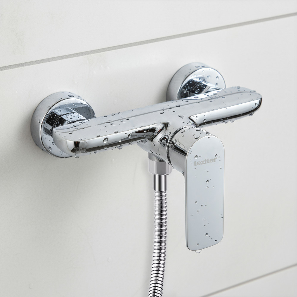 A Leziter Auri zuhany csaptelep elegáns, tükörfényes krómbevonata prémium hatást kelt, az ergonomikus forma tökéletes választás bármilyen zuhanykabin mellé – legyen az minimalista, ipari vagy klasszikus stílusú. Az időtálló dizájn és a gondosan megmunkált felület nemcsak esztétikus, hanem praktikus is: a csaptelep éveken át megőrzi ragyogó, újszerű kinézetét.