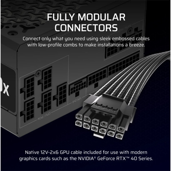 CORSAIR Tápegység Moduláris, RM850x, 850W, ATX 3.1, PCIe 5.1, 14cm, Cybenetics Gold