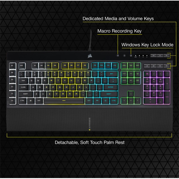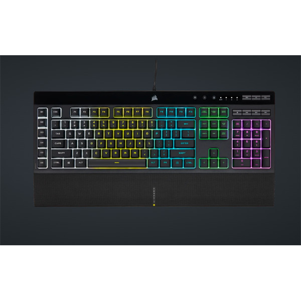 CORSAIR Vezetékes Billentyűzet Gaming, K55 RGB PRO, 6 programozható billentyű, Cseppálló, Csuklótámasz, US, fekete