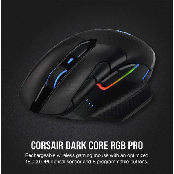 CORSAIR Vezetékes/Vezeték Nélküli Egér Gaming, DARK CORE RGB PRO, 8 programozható gomb, RGB, 18000dpi, fekete