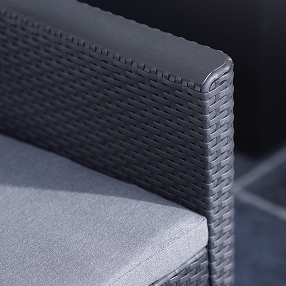 Időtálló bútor: A Grafit színű, stílusos párnákkal rendelkező kerti bútor szett könnyű, egyben tartós vázszerkezettel rendelkezik. Időjárásálló anyagai lehetővé teszik, hogy sok éven át a terasz, vagy az erkély kényelmes darabja maradjon.