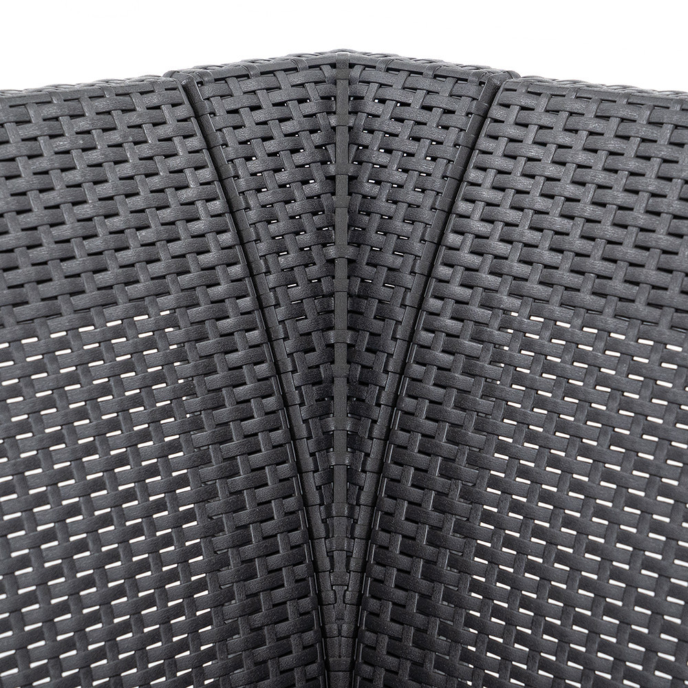 A garnitúra kiváló minőségű, időjárásálló anyagokból készült, amelyek ellenállnak az UV-sugárzásnak, esőnek és szennyeződéseknek. Karbantartást gyakorlatilag nem igényel – csak élvezni kell.