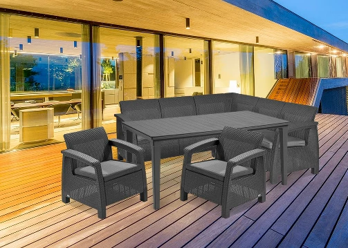 Lapos párnák, széles kartámaszok és kontúros háttámlák biztosítják a székek és kanapék kényelmét. A bútorgyártó a Curver márka, amely kiváló minőségű kerti bútorokat készít fröccsöntött műanyagból. Egy csoportban működik a közismert és népszerű Keter és Allibert márkákkal Lengyelországban.