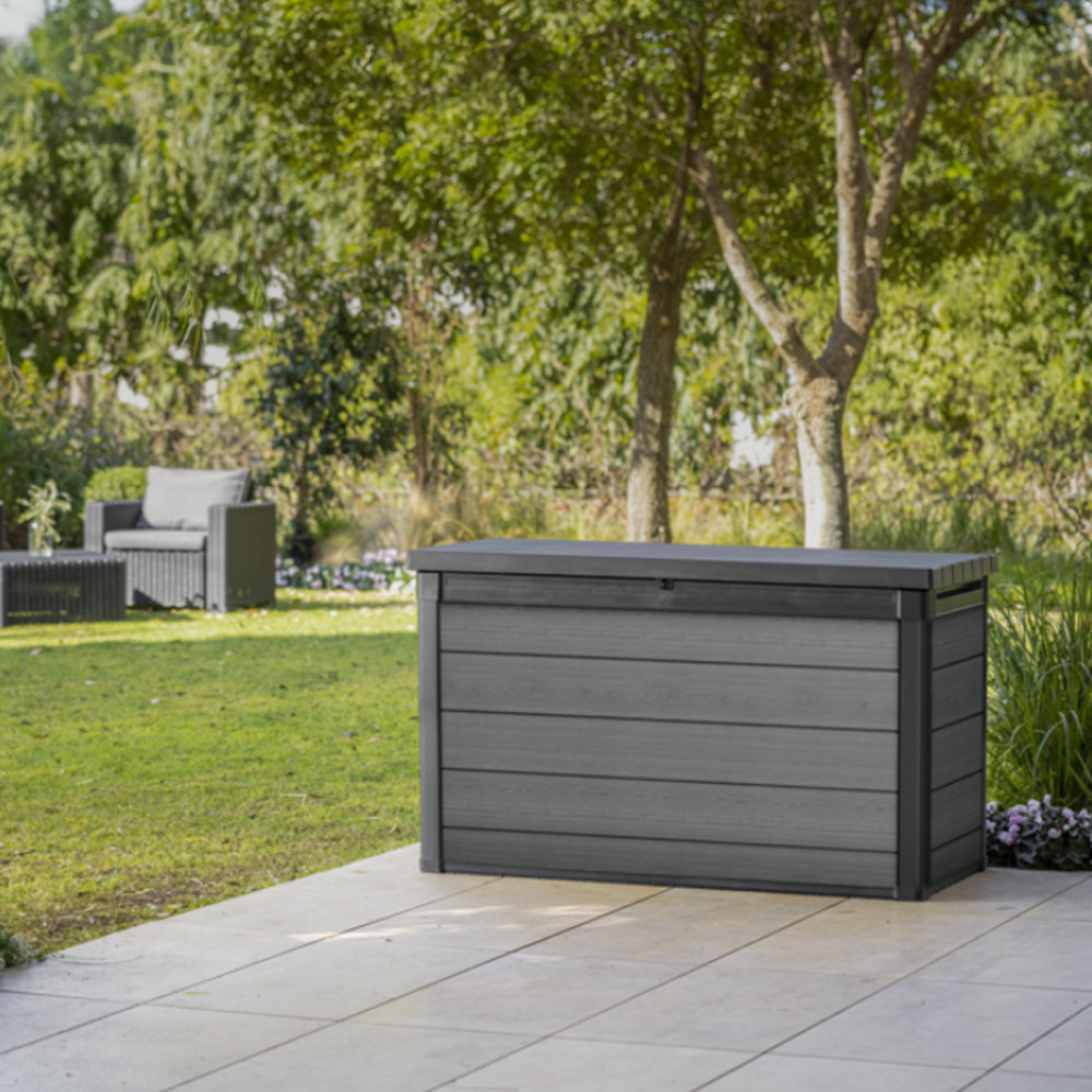 Modern tárolóeszköz a kertbe a Cortina 757L szürke műanyag kerti láda a modern kültéri tárolási megoldások legújabb generációját képviseli. Az Evotech™ kompozit anyagnak köszönhetően ez a kültéri tároló rendkívül erős és időjárásálló, valamint UV-védett, így hosszú távon megőrzi minőségét és színét.