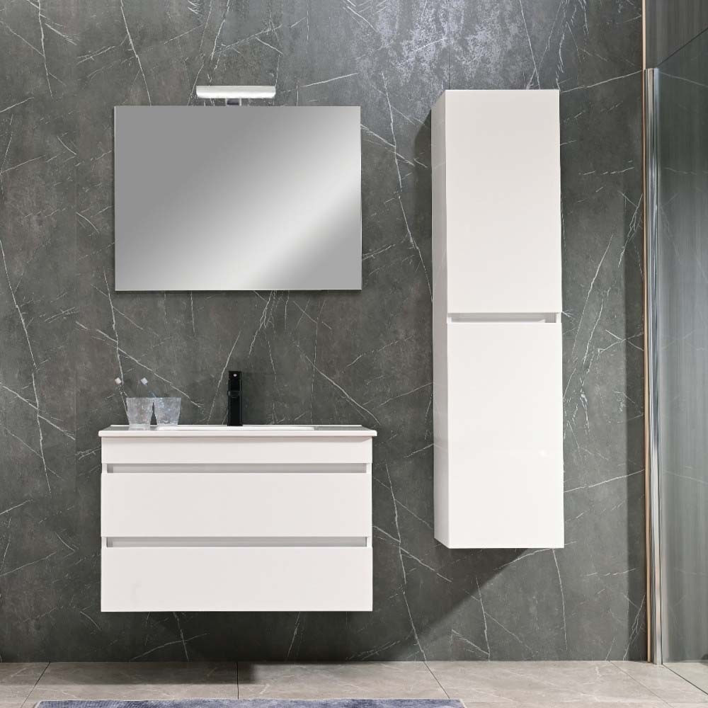 A funkcionalitás mellett természetesen a bútor megjelenésére is nagy figyelmet fordítottak. Magasfényű fehér színének és letisztult modern vonalainak köszönhetően harmóniát teremt az összes fürdőszoba hangulatában.