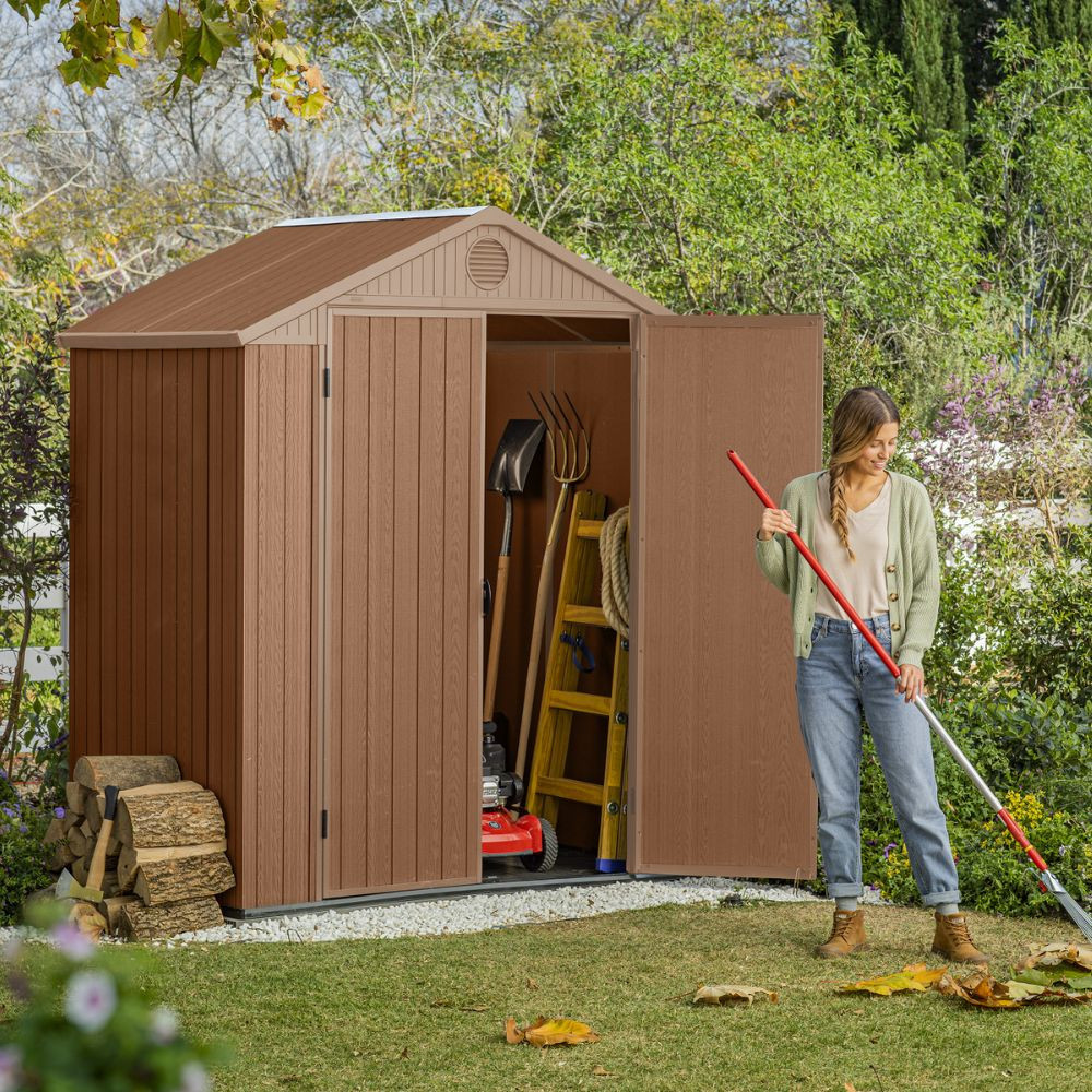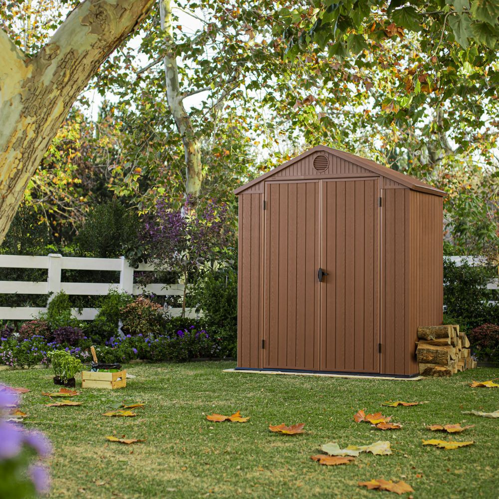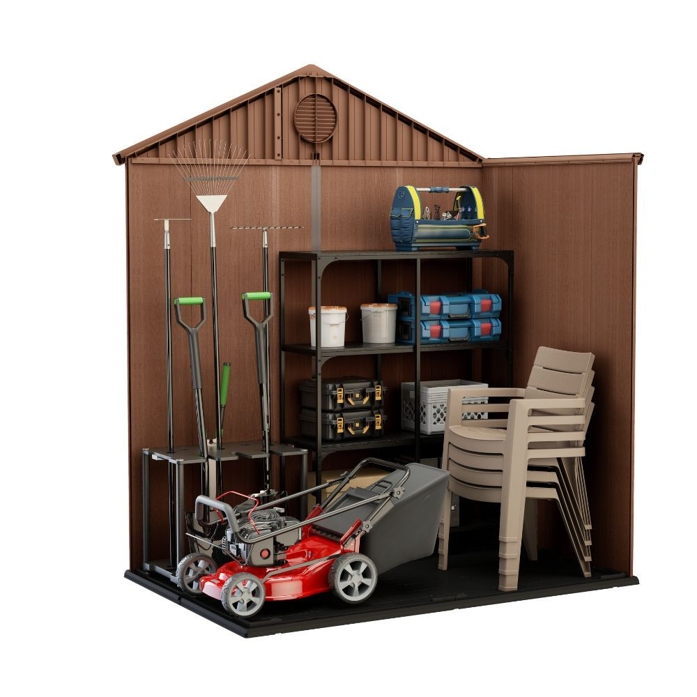 A Darwin 6x4 műanyag kerti ház ideális választás mindazok számára, akik kompakt, mégis tágas tárolási megoldást keresnek kertjükben. A ház innovatív kialakítása nem csak praktikus, hanem esztétikailag is vonzó, barna színű műanyag szerkezete kiválóan illeszkedik bármilyen kert stílusához.