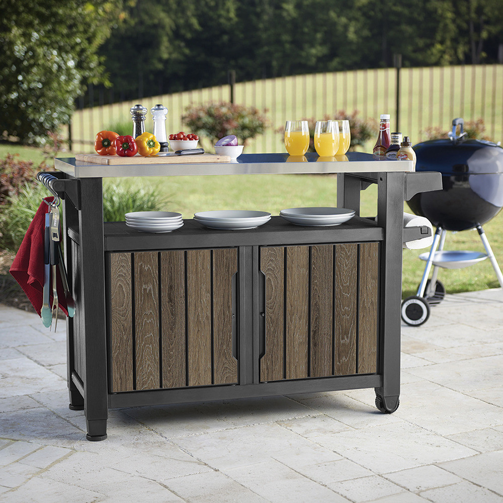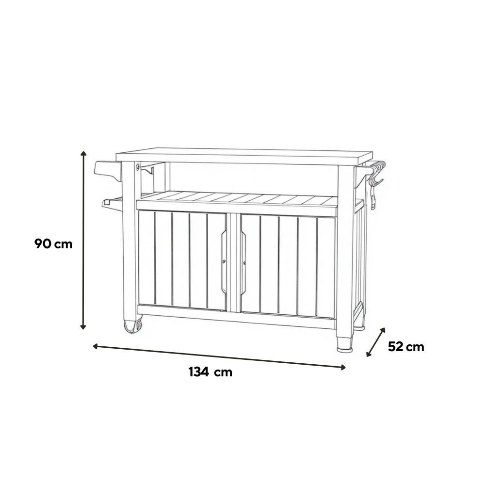 A Unity XL kerti grill asztal ideális megoldás grillezéshez és szabadtéri főzéshez. A nagy munkafelület és a praktikus tárolórész lehetővé teszi az ételek előkészítését, miközben minden szükséges eszköz kéznél marad.