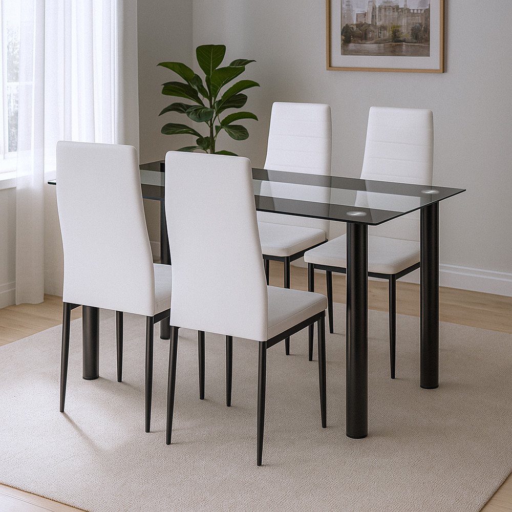 Denton 4+1 étkezőgarnitúra – Modern fehér-fekete stílus nagyobb asztallal és kényelmes székekkel