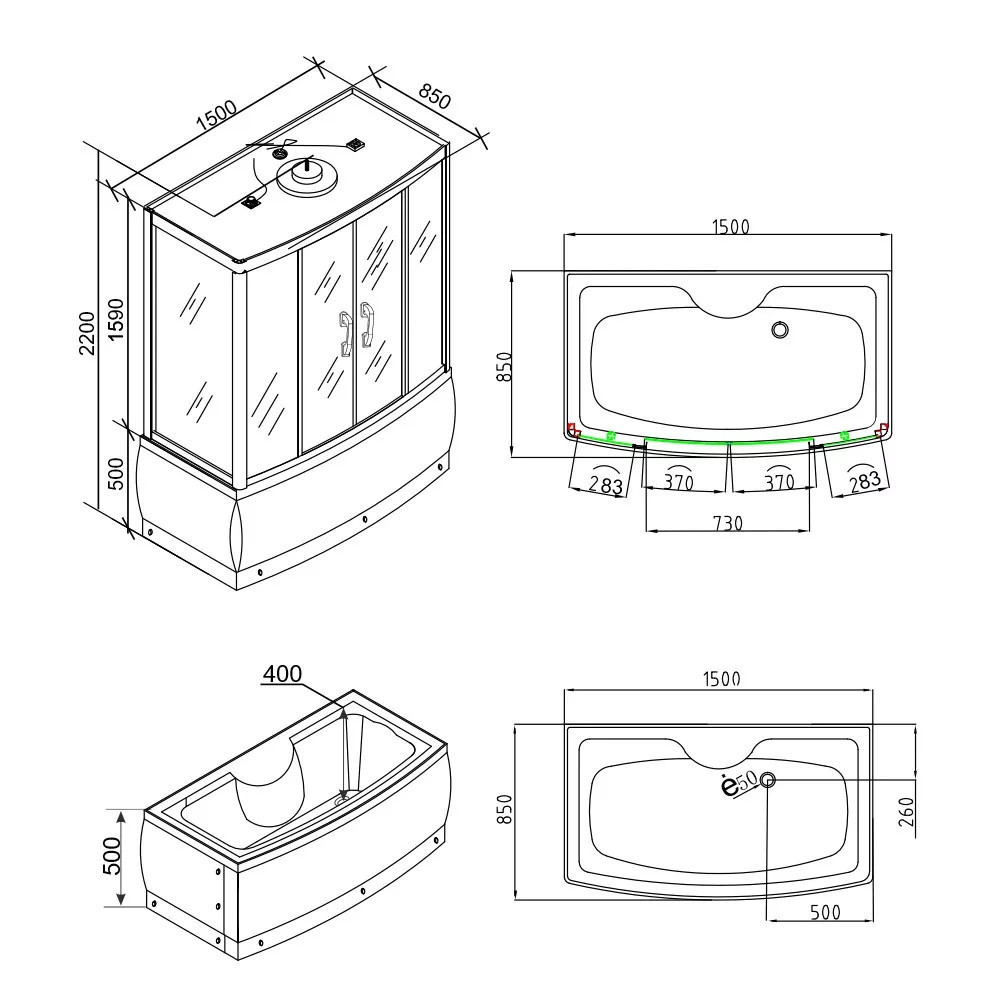 | Középső panel | PVC festett ezüst | Zuhanytálca anyag | ABS |