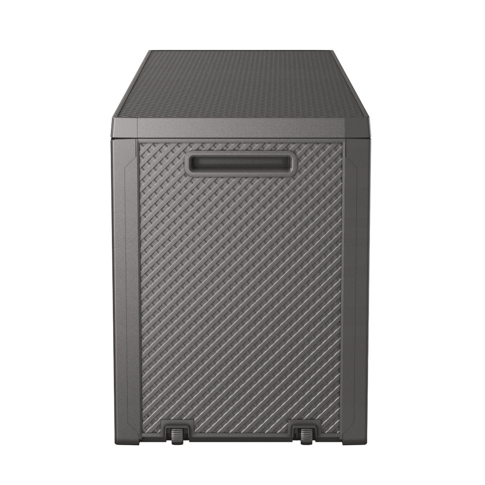A forma egyszerűsége, valamint a könnyű és gyors összeszerelés az univerzális Emily 270L doboz fő előnyei. A kerti tároló különféle kerti szerszámok és kiegészítők, párnák és gyerekjátékok tárolására szolgál. A modern dizájn és a klasszikus színek lehetővé teszik, hogy a dobozt bármilyen kerti dekorációhoz illessze.