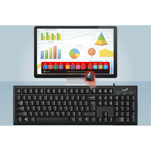 GENIUS Vezetékes Billentyűzet KB-100 SMART Programozható USB HUN Fekete