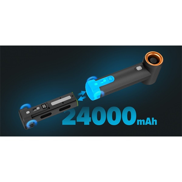 A nagy akkumulátorkapacitás (24 000 mAh) akár 5,5 óra megszakítás nélküli használatot biztosít egyetlen feltöltéssel (minimális fúvóteljesítmény mellett). Ha több energiára van szüksége, a gyorselem-csere rendszer lehetővé teszi, hogy mindössze 3 másodperc alatt új cellát helyezzen be. Nincs kéznél tartalék akkumulátor? Semmi gond. Az 54 W-os USB-C Power Delivery gyorstöltéssel körülbelül 2 óra alatt feltöltheted az akkumulátort. Így soha nem kell aggódnod, hogy kifogy az áram, amikor fontos feladatokat végzel a FeiyuTech KiCA JetFan Max fúvókával a kezedben.