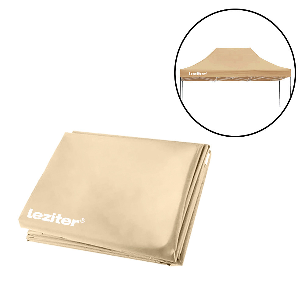 A Leziter 3x4,5 méteres pavilon tetőponyvája 420D Oxford szövetből készül, amely PVC bevonatának köszönhetően vízlepergető és UV-álló. A négy oldalon elhelyezett Leziter logó igényes megjelenést ad, bármilyen rendezvényen. A bézs szín elegáns, harmonizál a kerted stílusával. Ez a ponyva könnyen cserélhető, így egy hirtelen jött meghívás vagy tervezett esemény előtt is pillanatok alatt megújíthatod pavilonod tetőjét.