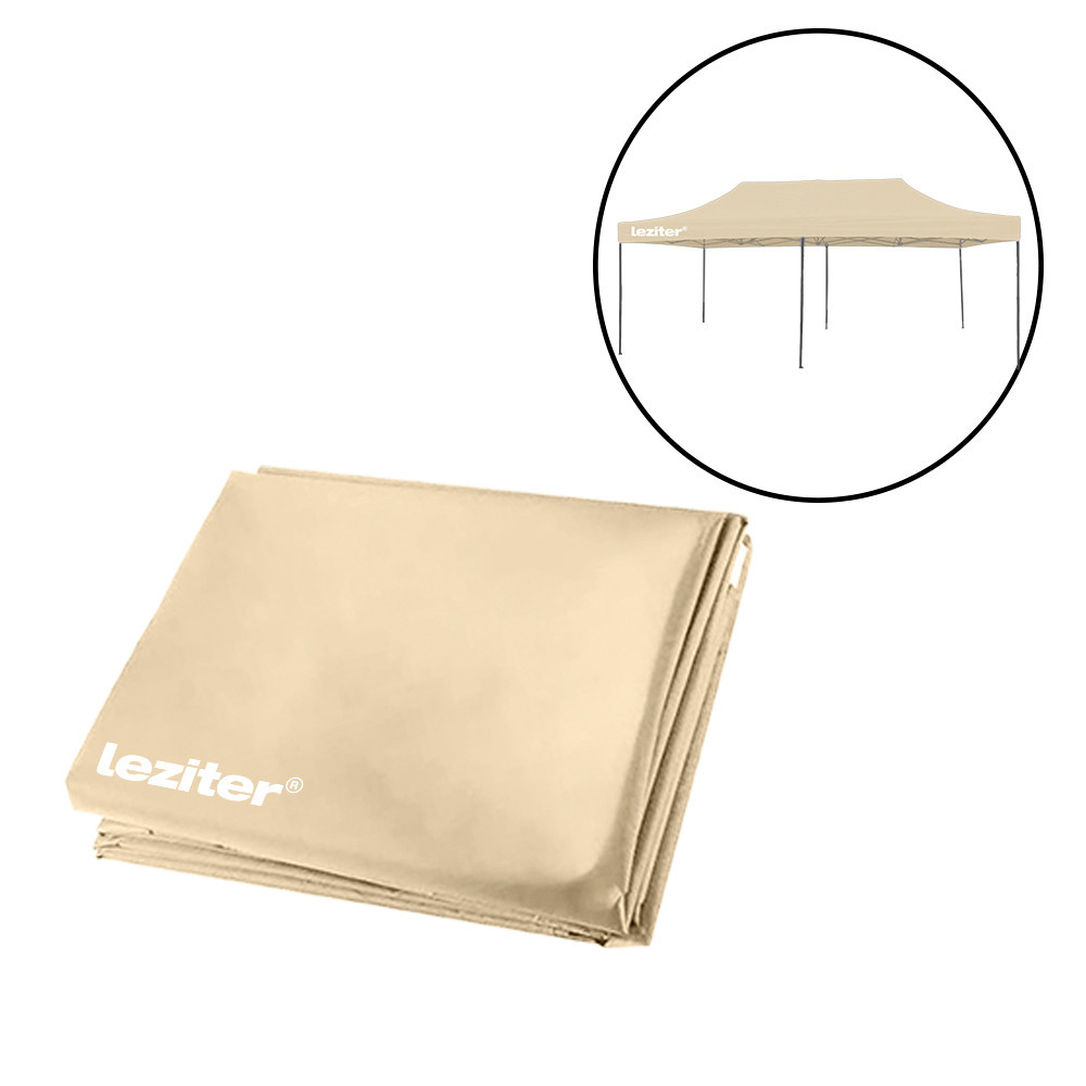 A Leziter 3x6 méteres pavilon tetőponyvája 420D Oxford szövetből készül, amely PVC bevonatának köszönhetően vízlepergető és UV-álló. A négy oldalon elhelyezett Leziter logó igényes megjelenést ad, bármilyen rendezvényen. A bézs szín elegáns, harmonizál a kerted stílusával. Ez a ponyva könnyen cserélhető, így egy hirtelen jött meghívás vagy tervezett esemény előtt is pillanatok alatt megújíthatod pavilonod tetőjét.