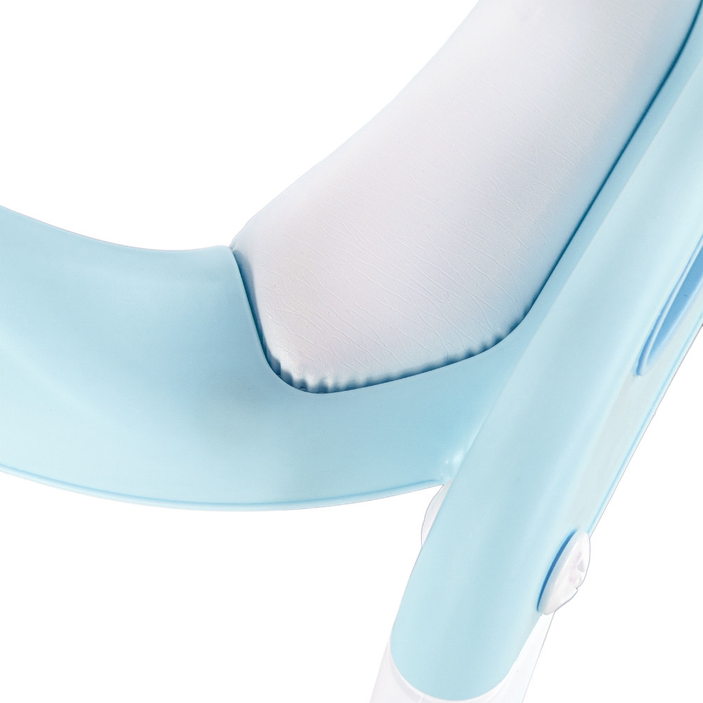 Az ülőke párnázott PVC borítású, amely nemcsak puha és kényelmes, hanem könnyen tisztítható és higiénikus is – ideális mindennapi használathoz.