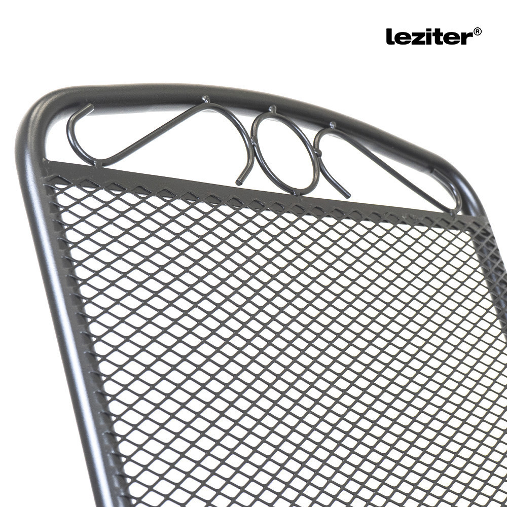 A Melfi 4+1 kerti bútor garnitúra szett antracit színben egy nagyméretű Melfi téglalap alakú kerti asztalt és 4 db kényelmes Melfi karfás széket tartalmaz, stabil acél szerkezetével, korrózióálló és porszórt felületkezelésével, valamint modern hálós kialakításával ideális választás családi étkezésekhez és baráti összejövetelekhez kertben, teraszon vagy erkélyen.