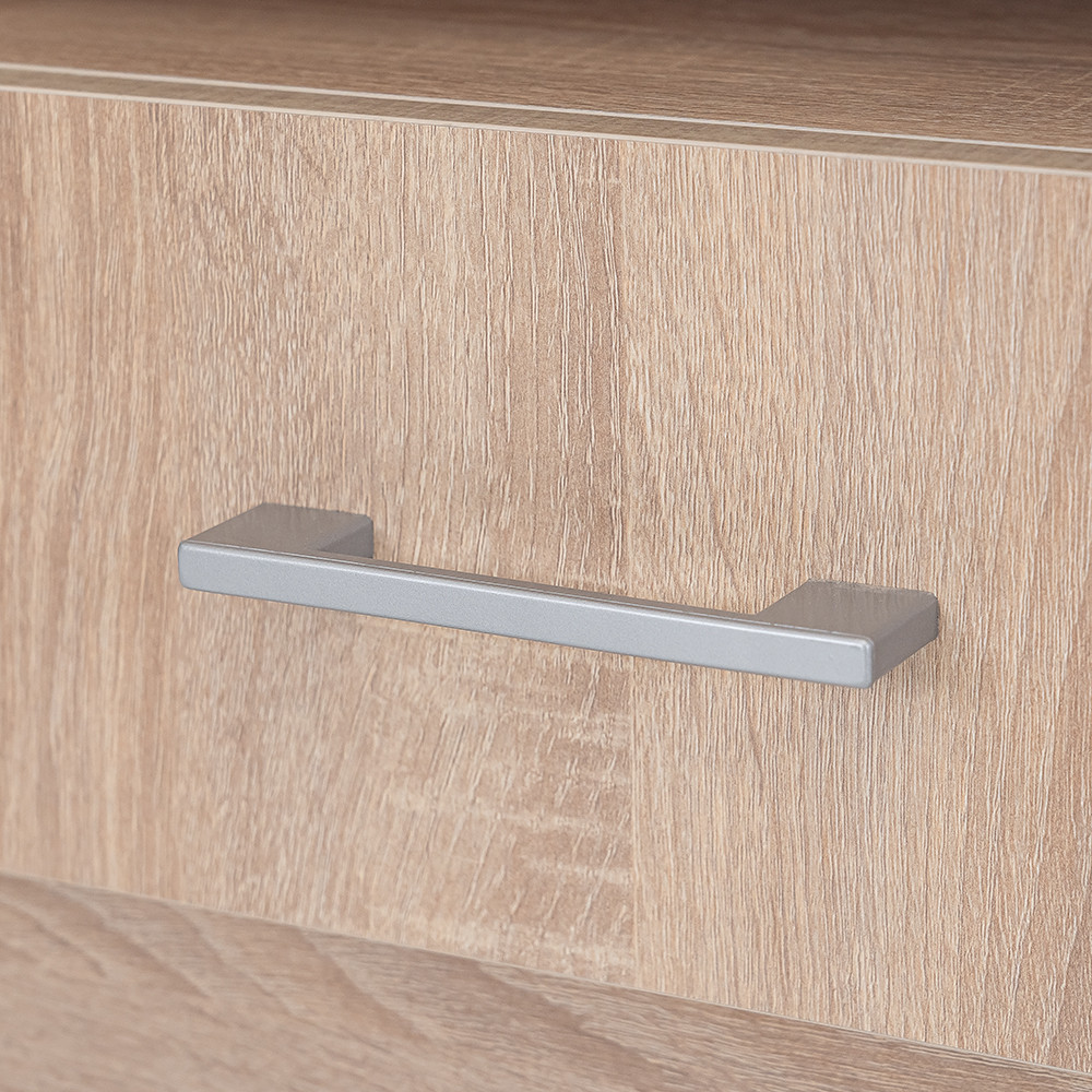 A sonoma tölgy korpusz és a sonoma tölgy front letisztult megjelenést kölcsönöz, míg a matt króm hatású műanyag fogantyú modern megjelenést biztosít. A szekrény minimalista dizánja ideális választás lehet, ha a letisztult vonalakat részesíted előnyben.