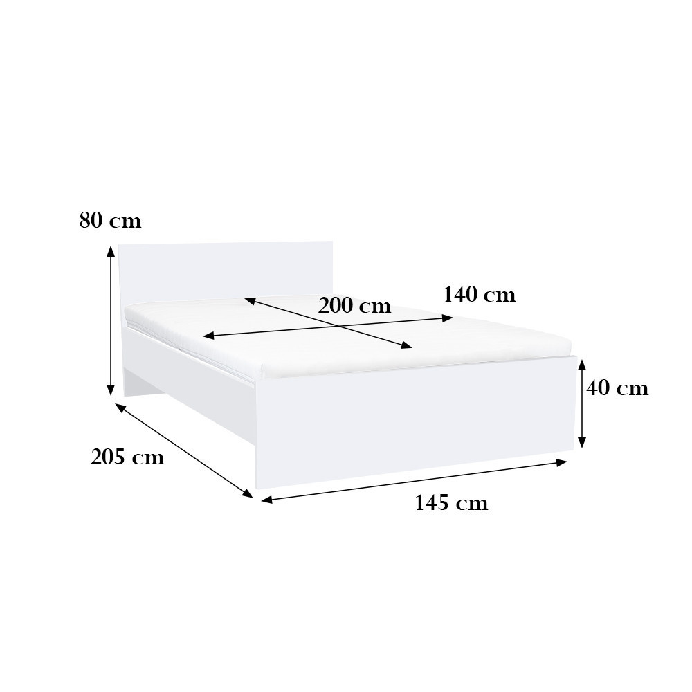 | Méretek | Ágykeret: 205 x 145 cm, Ágytámla: 80 x 145 cm, Matrac (ajánlott méret): 200 x 140 cm. |