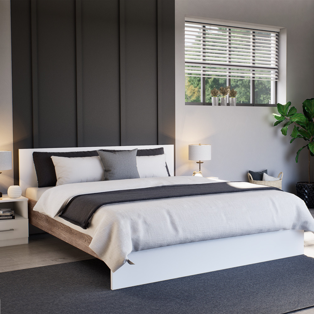 | Anyag | Kiváló minőségű bútorlap, fehér oldallappal, fehér fejvéggel és ágyvéggel. |