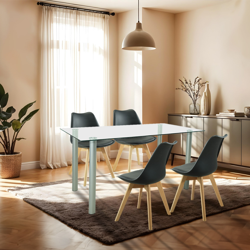 A Midori 4+1 Étkező Garnitúra tökéletes választás, ha modern stílust és funkcionális kényelmet szeretnél az étkeződbe vagy konyhádba. A kifinomult design és a magas minőségű anyagok garantálják, hogy ez a garnitúra hosszú távon is megőrzi szépségét és kényelmét.