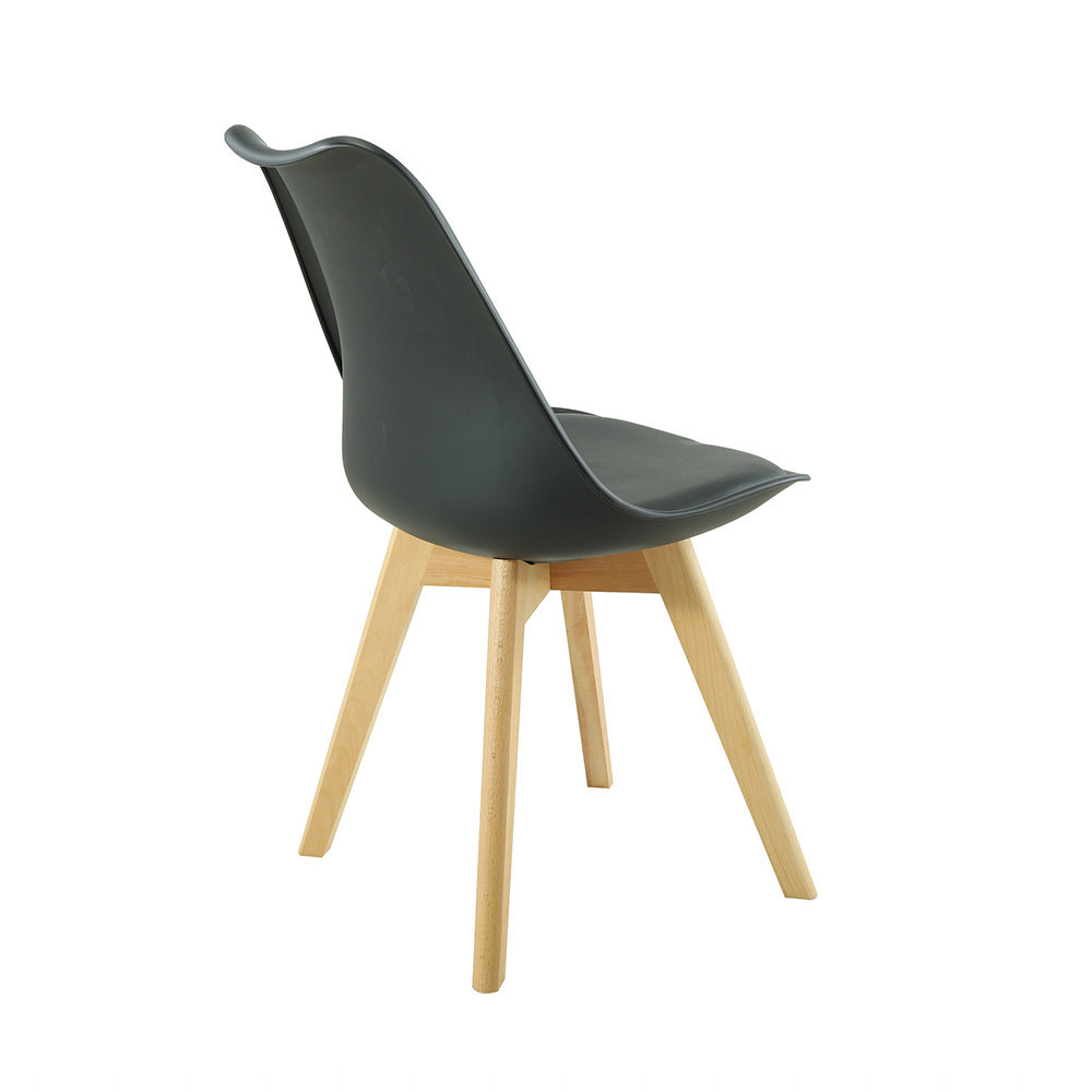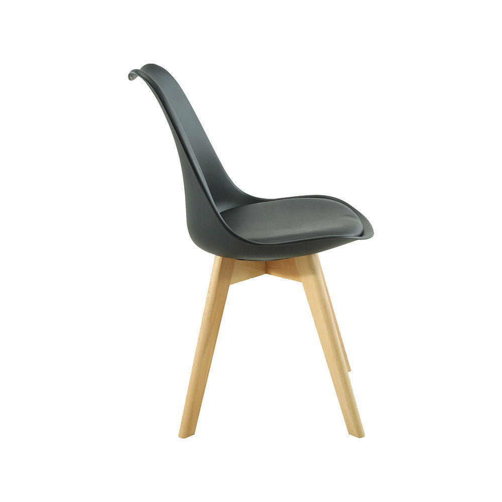 - Elegáns design: fekete színű, polipropilén ülőfelület és fekete PVC párnázat, természetes bükkfa színű lábakkal. Modern és elegáns megjelenés.
