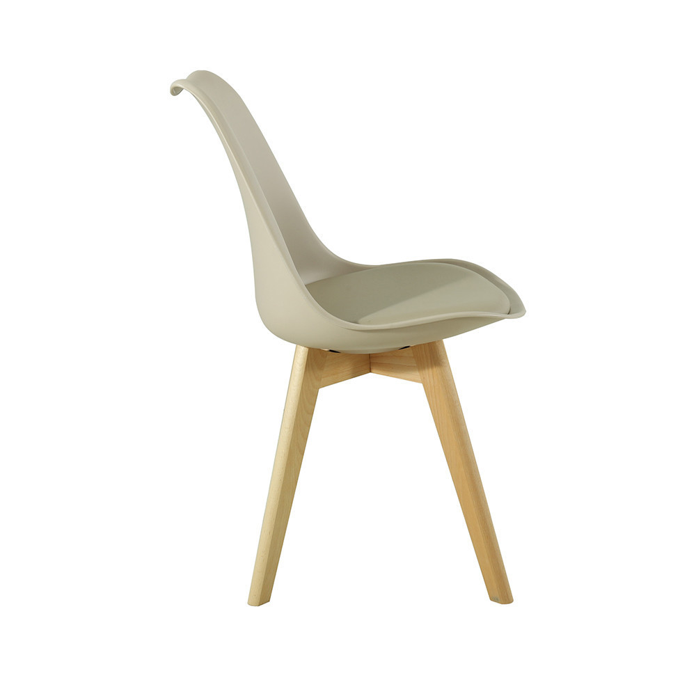 - Elegáns design: Bézs színű, polipropilén ülőfelület és bézs PVC párnázat, természetes bükkfa színű lábakkal. Modern és elegáns megjelenés.