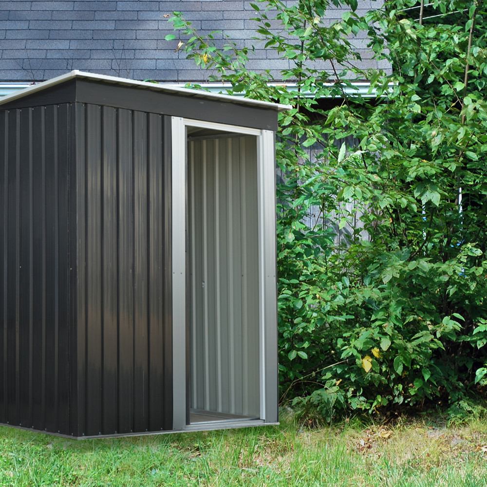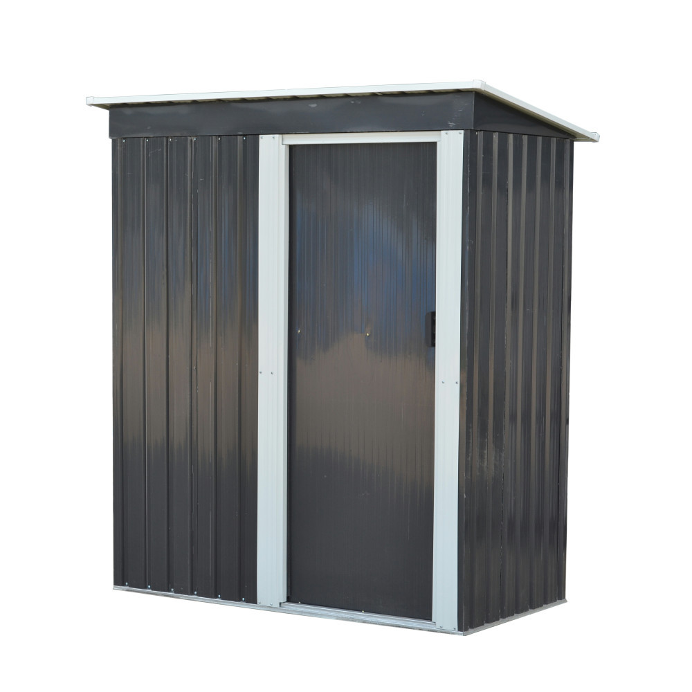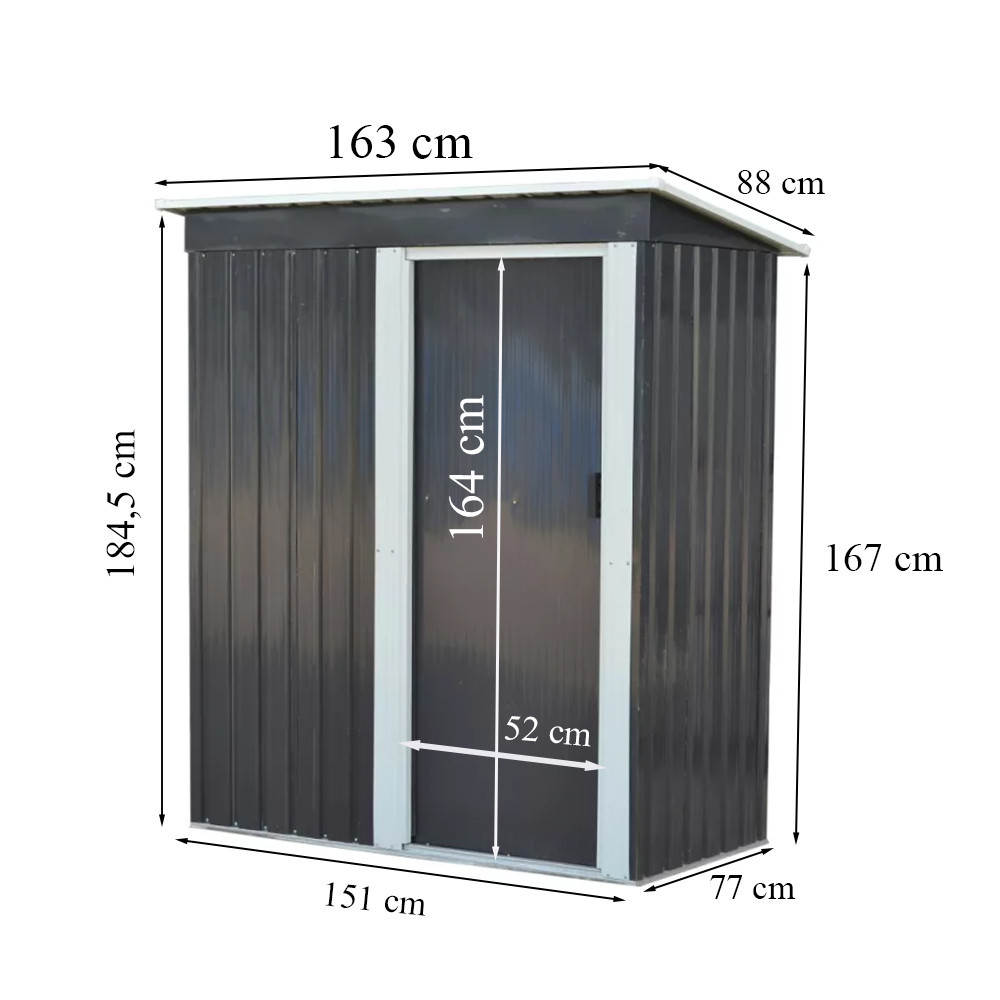 A kerti szerszámtároló ház anyaga 0,27 mm vastagságú cinkacél colorbond, amely garantálja a tartósságot és a hosszú élettartamot. A szerkezet 0,6 mm vastag cinkacél kerettel van megerősítve, amely növeli a stabilitást és a biztonságot. Az anyag rozsdaálló, így az épület kívülről is megőrzi esztétikus és vonzó megjelenését. A kerti szerszámtároló ház összeszerelése egyszerű és könnyen kivitelezhető.