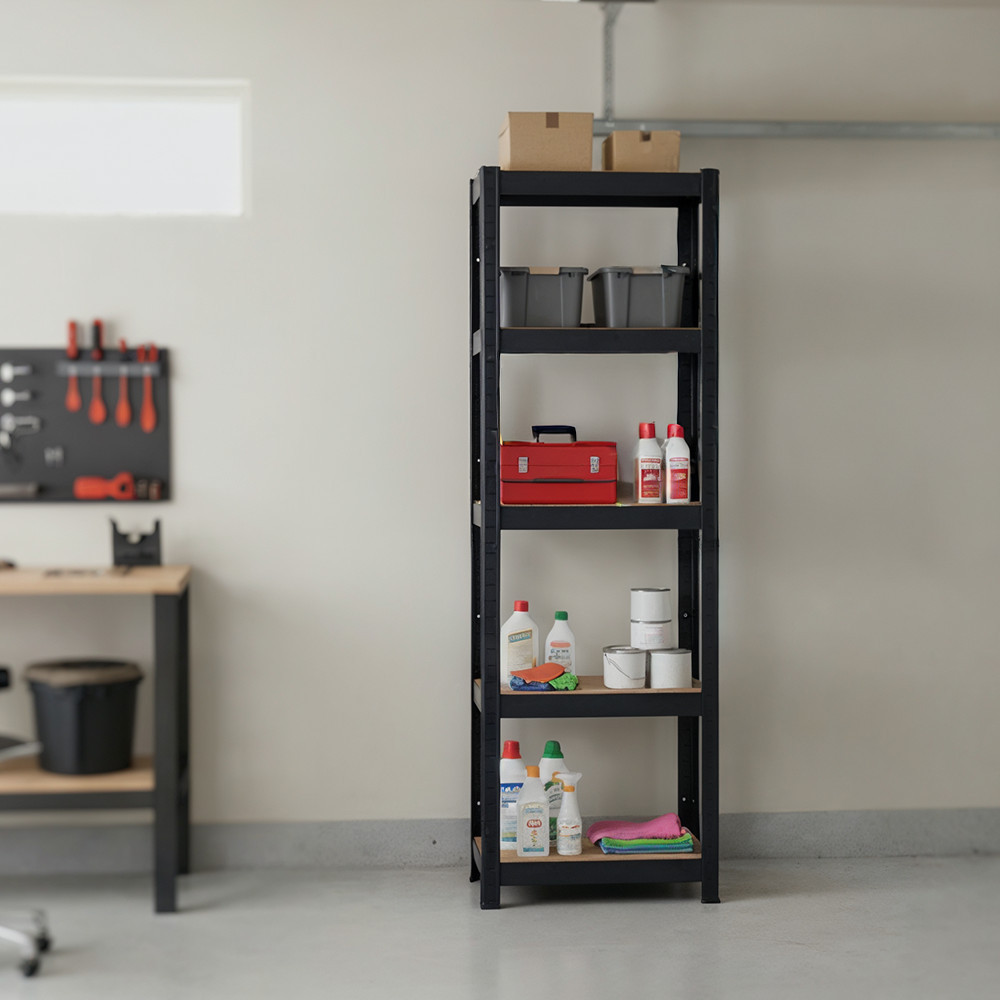 Az 5 polc alapból 36 cm távolságra helyezkedik el egymástól, de bármikor áthelyezhetők 3,5 cm-enként. Ez a rugalmasság biztosítja, hogy a polcrendszer pontosan az igényeidhez igazodjon, legyen szó kisebb dobozokról vagy nagyobb szerszámokról. A keskeny, nagy teherbírású polc így mindig személyre szabható.