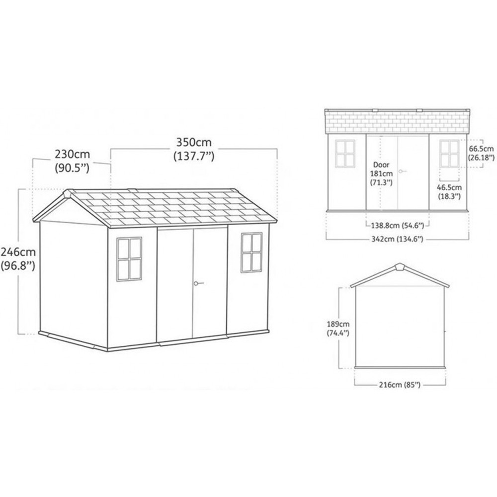 A Newton Plus 11 x 7,5 kerti ház tökéletes megoldás, ha biztonságos, rendezett és tartós tárolóhelyre van szükség. Külső méretei: 230 cm (szélesség) x 350 cm (hosszúság) x 246 cm (magasság). A tágas belső tér elegendő helyet biztosít a kerti és műhelyeszközöknek, sportfelszereléseknek és grillkellékeknek. Az EvoTech anyagnak köszönhetően időjárásálló és karbantartásmentes, így nem kell aggódnod a festés vagy impregnálás miatt.