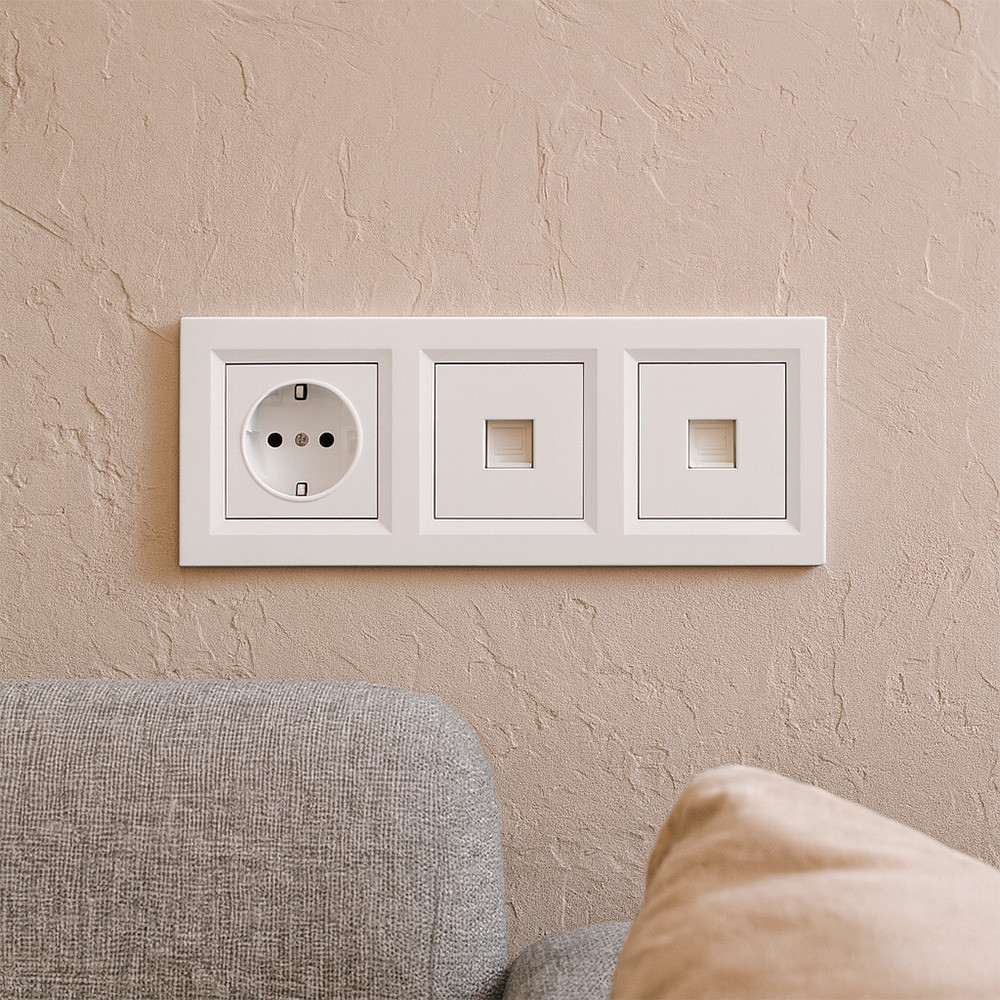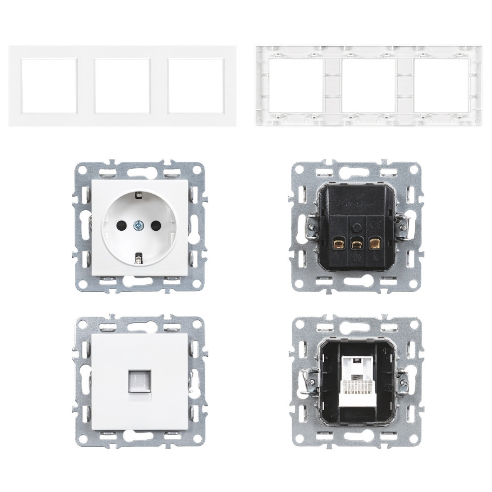 • Kialakítás: Keret nélküli modul fehér hármas kerettel