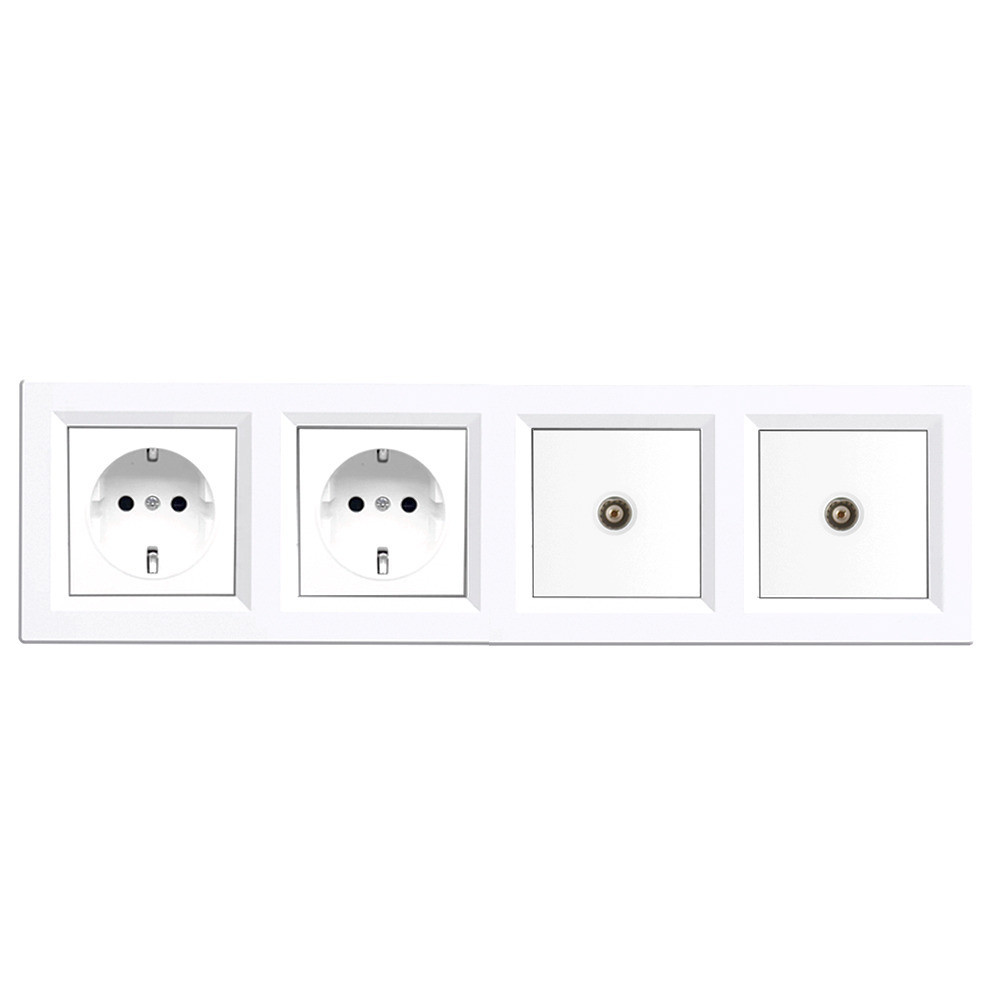 - Típus: 2× földelt csatlakozóaljzat (2P+F, F típus) + 2× TV (RF koaxiális) aljzat