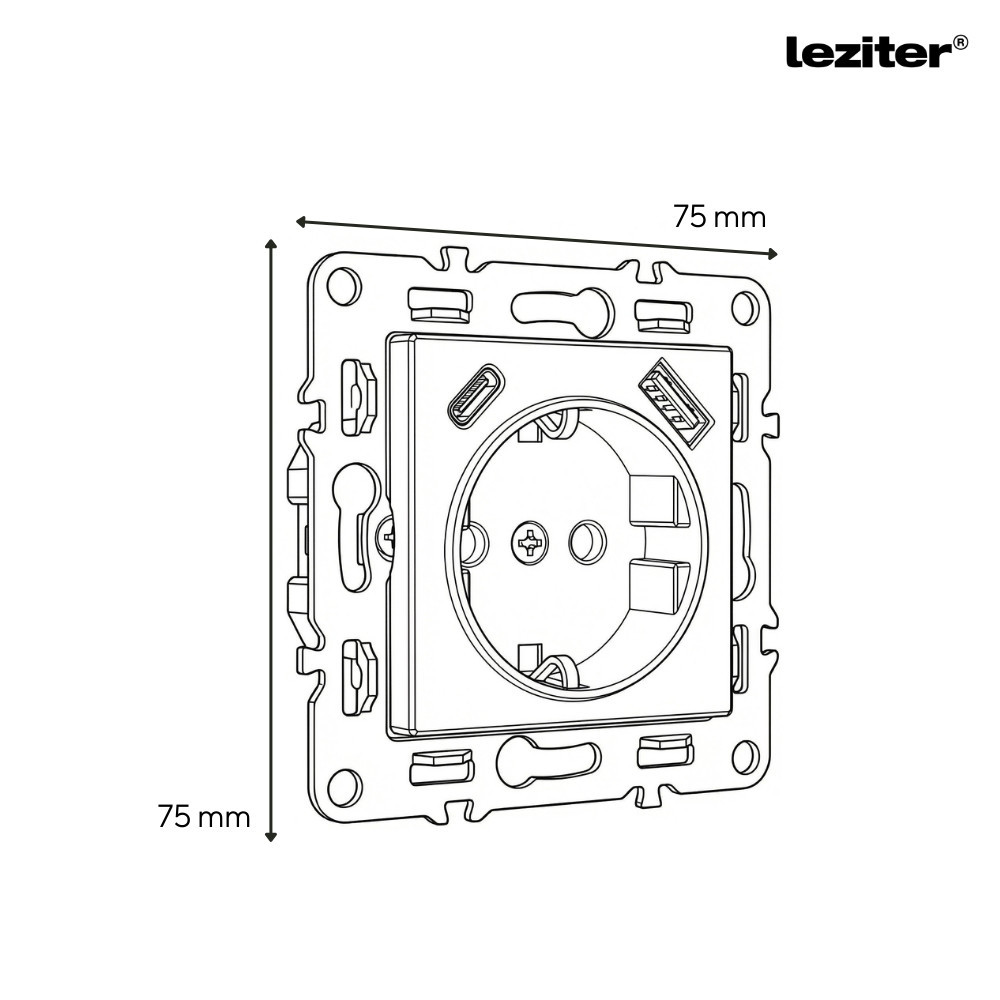 A Nova földelt csatlakozóaljzat USB csatlakozóval egy innovatív megoldás, amely egyesíti a hagyományos elektromos dugalj funkcióját és a praktikus USB töltési lehetőséget. Beépített USB-A és USB-C portjai lehetővé teszik a kisebb fogyasztású eszközök, például okostelefon, vezeték nélküli fülhallgató, okosóra töltését – külön hálózati adapter nélkül.