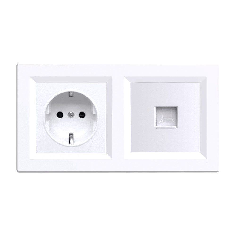 Nova földelt csatlakozóaljzat dugalj 16A 250V UTP csatlakozóval fehér kerettel – hálózati és adatcsatlakozás egyetlen szerelvényben