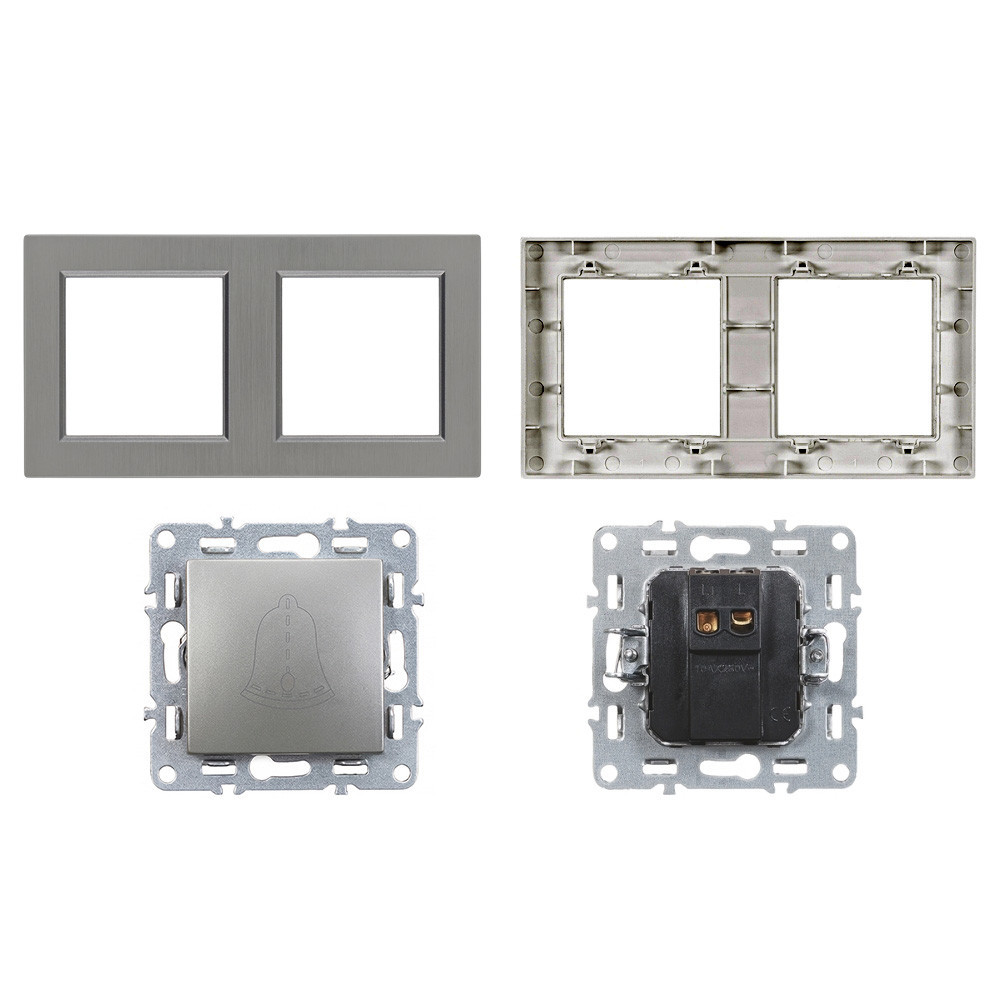 Rendeld meg a Nova kettős csengőkapcsolót szürke keretben, és teremts letisztult, megbízható impulzusvezérlést otthonodban vagy munkahelyeden – stílusosan és praktikusan.