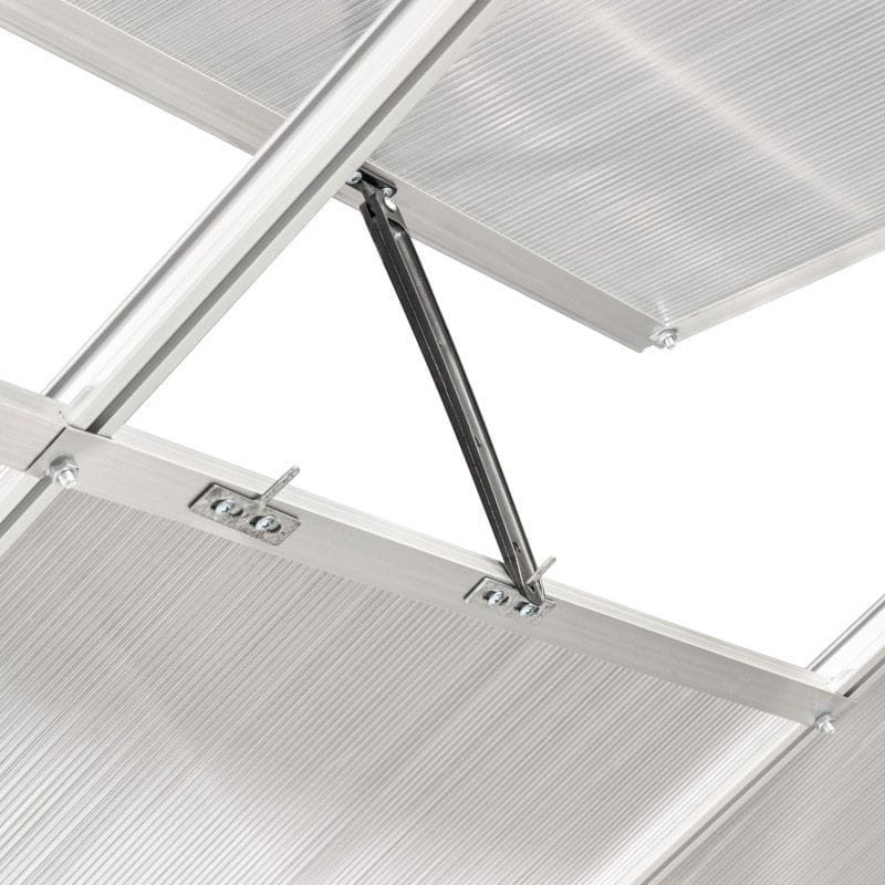 Az üvegház vázszerkezete alumíniumból készült, ami hatékonyan minimalizálja a korrózió kockázatát . Az acél alapzat jelentősen hozzájárul a kerti üvegház szerkezetének stabilitásához és szilárdságához. Ennek a szerkezetnek további előnye a könnyű összeszerelés és a lehetőség, hogy bárhol elhelyezhető a kertben vagy a telken.