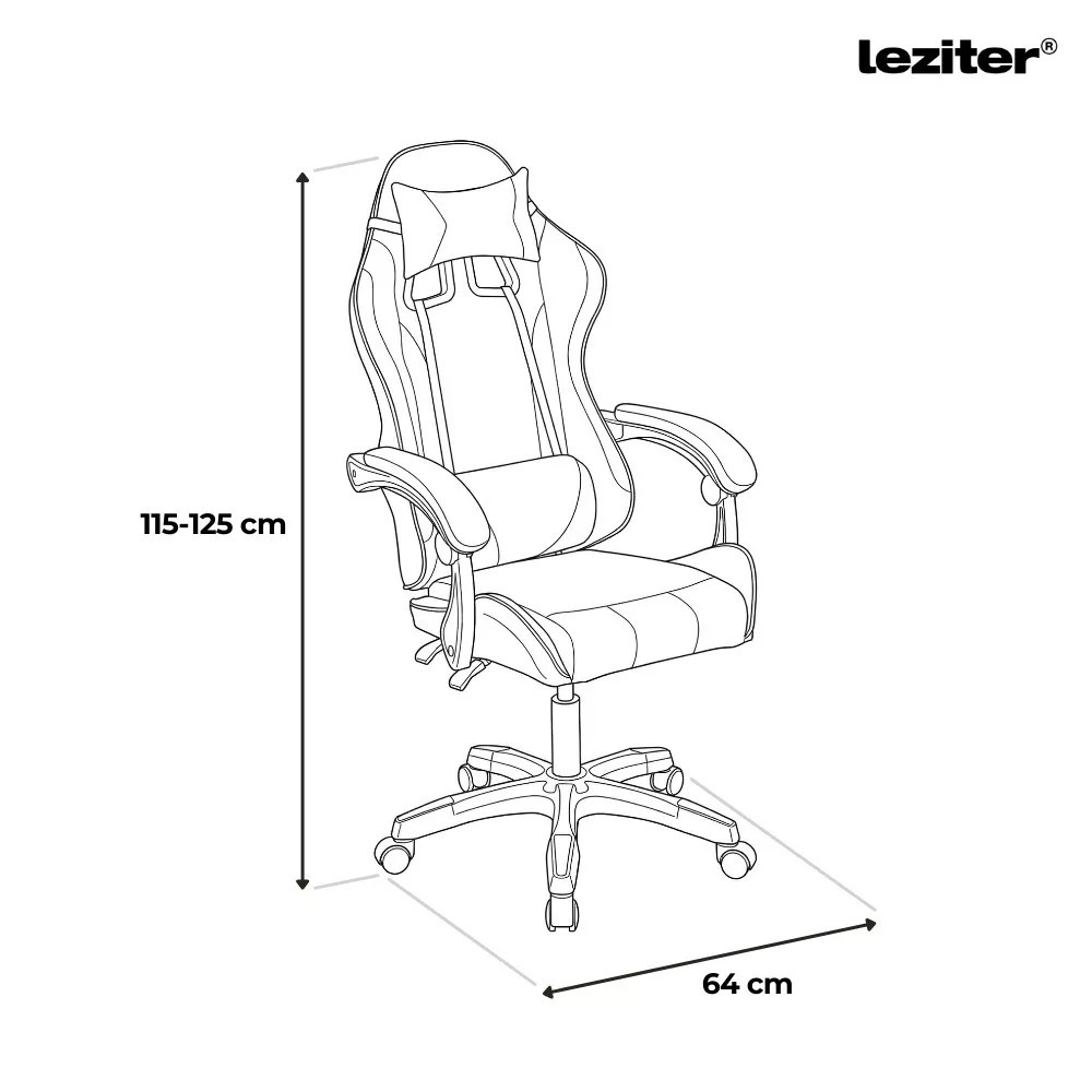 A Leziter Raven gamer irodai forgószék a kényelem, a modern design és a tartós kialakítás tökéletes egyensúlyát kínálja. Ideális választás mindazoknak, akik hosszú órákat töltenek képernyő előtt – akár munkáról, akár játékról van szó. Az ergonomikus részletek, a kiváló minőségű PU bőr borítás és a megbízható szerkezeti megoldások mind a komfortot szolgálják.