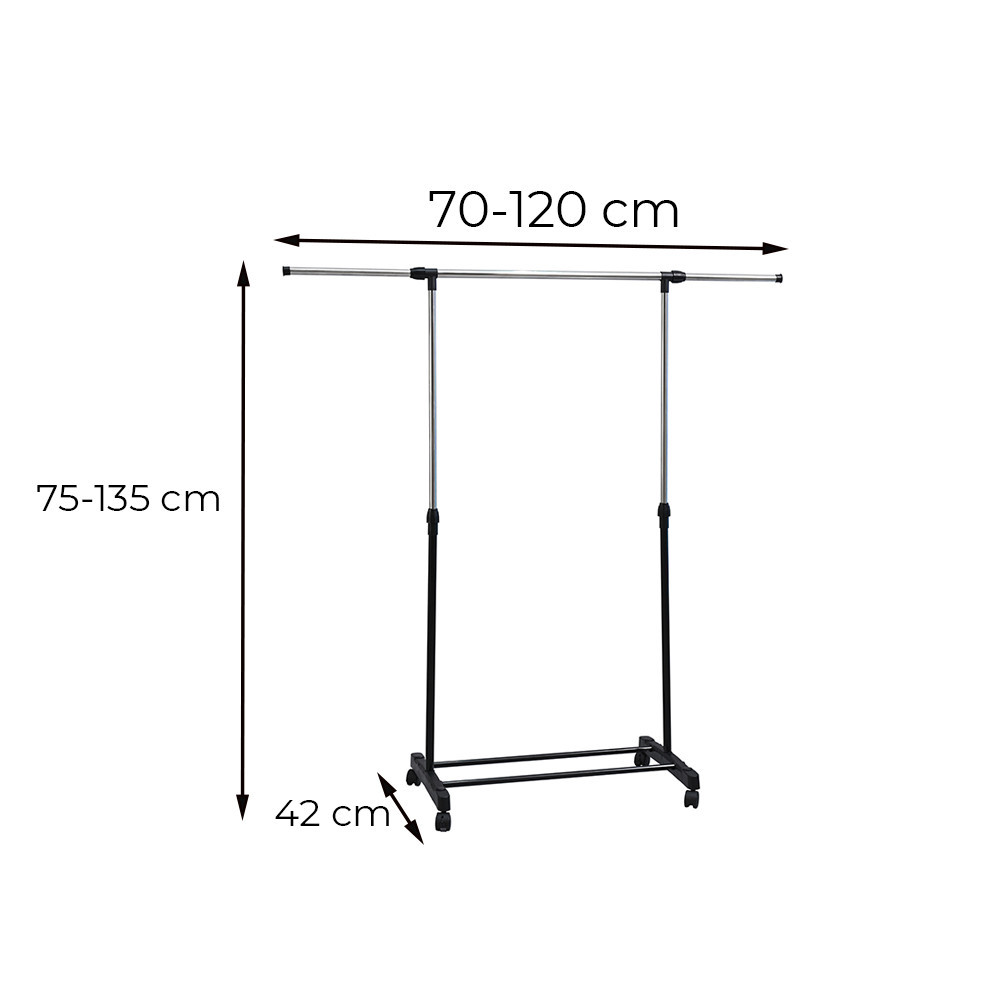 - Állítható magasság: Az állvány magassága 75 cm és 135 cm között állítható, így különböző méretű ruhák tárolására is alkalmas, legyen szó hosszú kabátokról vagy rövid blúzokról.