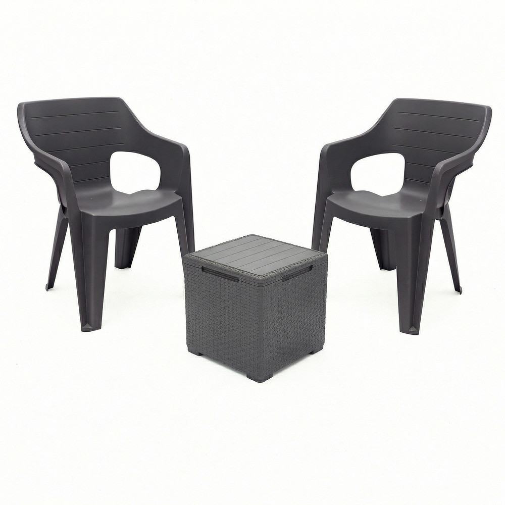 - 2 db Bilbao Lowback műanyag kartámaszos kerti szék grafit – 57 x 57 x 79 cm