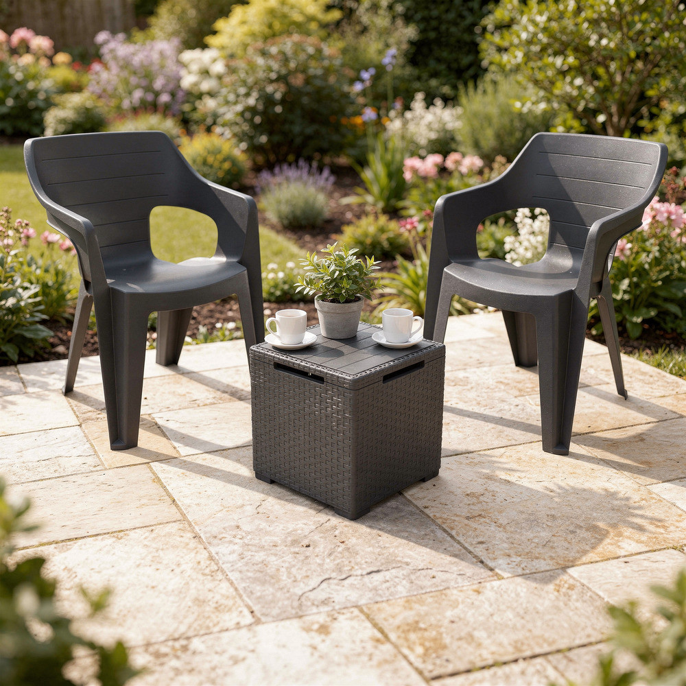 - 1 db Vigo kerti tárolós asztal grafit – 37 x 37 x 37 cm