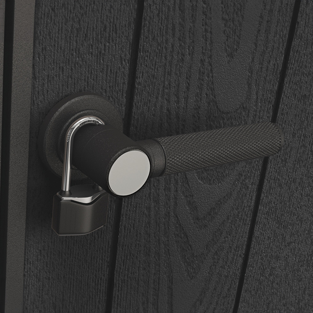 - Praktikus tárolási megoldások: Ez a kerti ház tökéletes választás lehet mindazok számára, akik helyet keresnek barkácsszerszámok, kerti eszközök, sportfelszerelések vagy akár tűzifa tárolására. A dupla ajtók kényelmes hozzáférést biztosítanak a belső térhez, a szellőzőrendszer pedig gondoskodik a megfelelő levegőáramlásról, hogy a tárolt eszközök ne legyenek nedvesek vagy dohosak. Az ajtózárnak köszönhetően a kerti ház biztonságosan lezárható, így értékeid mindig védettek maradnak.