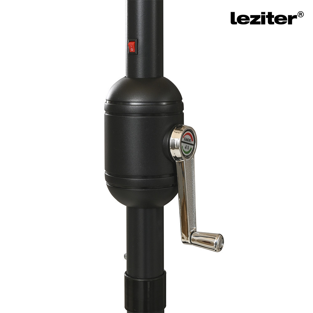 A kézi tekerőkaros mechanika fel- és leengedést tesz lehetővé, a forgatókar egyértelmű irányjelöléssel ellátott. A dönthető funkció nyomógombbal működtethető, amely lehetővé teszi a ponyva dőlésszögének módosítását a kívánt beállítás szerint. A bordák mentén elhelyezett beépített LED világítás esti és alkonyati használat során kiegészítő fényt biztosít.