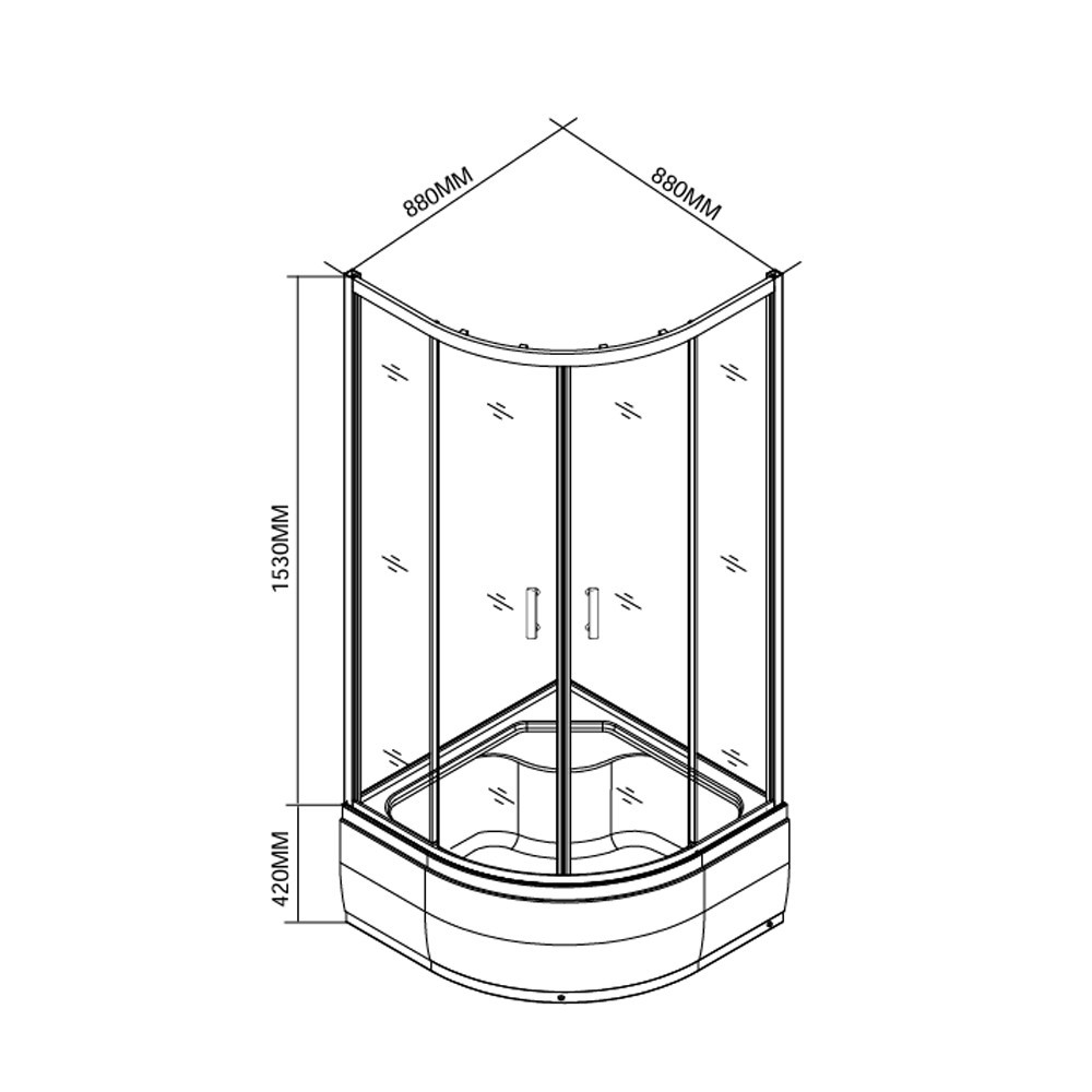 - Típus: Íves zuhanykabin mély zuhanytálcával