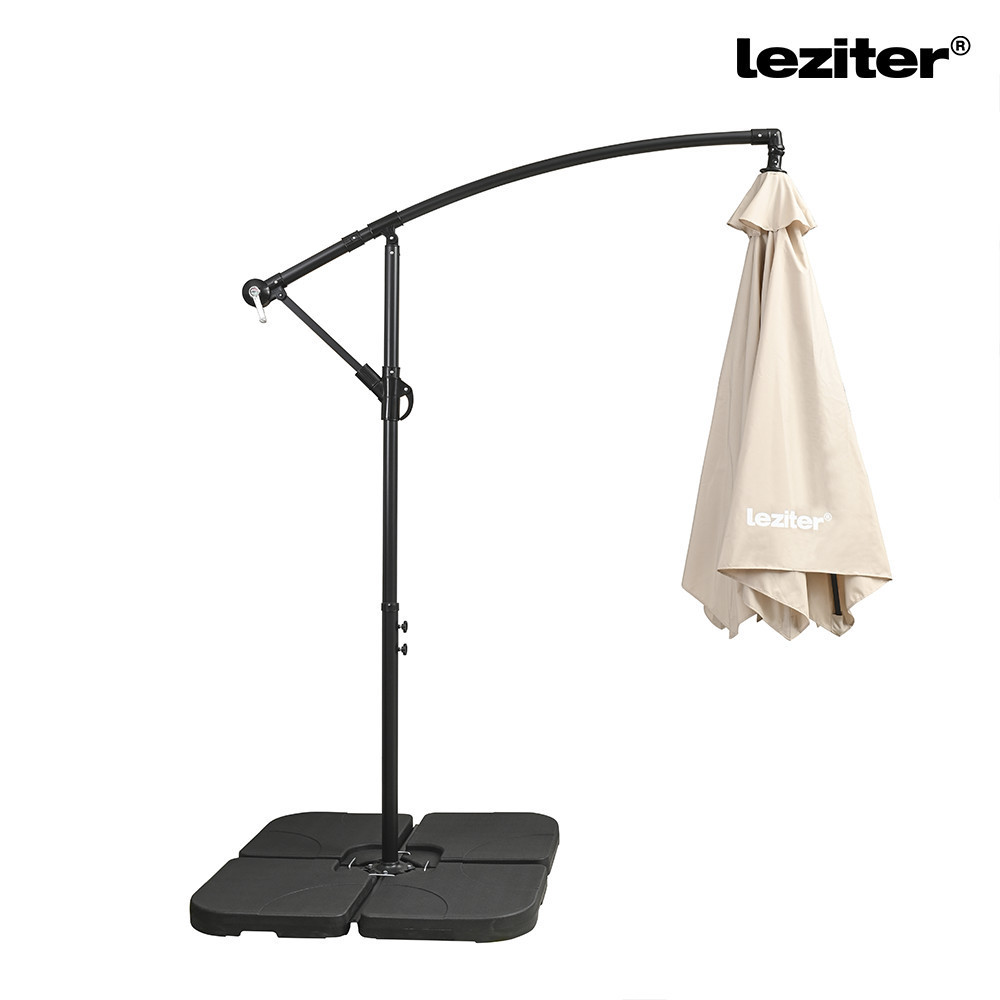 A Leziter Sunny kerti napernyő azok számára lehet megfelelő választás, akik kör alakú, oldalkaros napernyőt keresnek kertbe vagy teraszra. Ajánlott kerti asztalok, pihenőbútorok fölé, ahol fontos a szabadon hagyott középtér, a kézi kezelhetőség és a dönthető kialakítás. A napernyő kereszt alakú talpszerkezettel használható, a talp nem része a csomagnak.