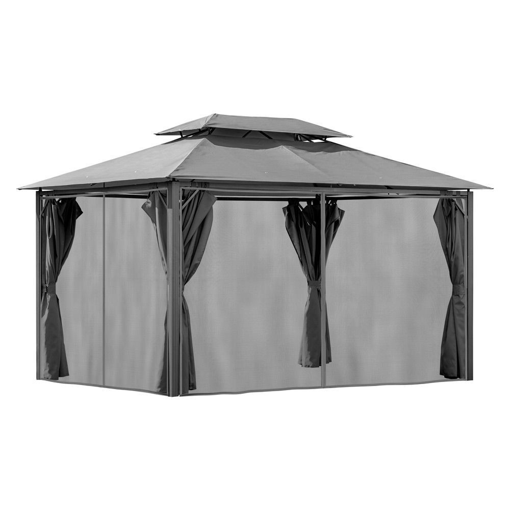 A 3x4-es kerti pavilon falakkal és szúnyoghálóval praktikus megoldás a teraszra és a kertre. A szerkezet alumínium lábakkal rendelkezik, és acél gerendákkal van megerősítve , amelyek együttesen biztosítják a stabilitást. A megnövekedett korrózióállóságnak és a kedvezőtlen időjárásnak köszönhetően a pavilon hosszabb ideig tart. A tető anyaga 180 g poliészter PA réteggel, míg a falak 160 g poliészterből készültek. Ezt az anyagot a nagyobb nedvességállóság jellemzi , ezért tökéletes kültéri használatra. Könnyen összeszerelhető és strapabíró sátor, sok évszakon keresztül megbízhatóan szolgál.