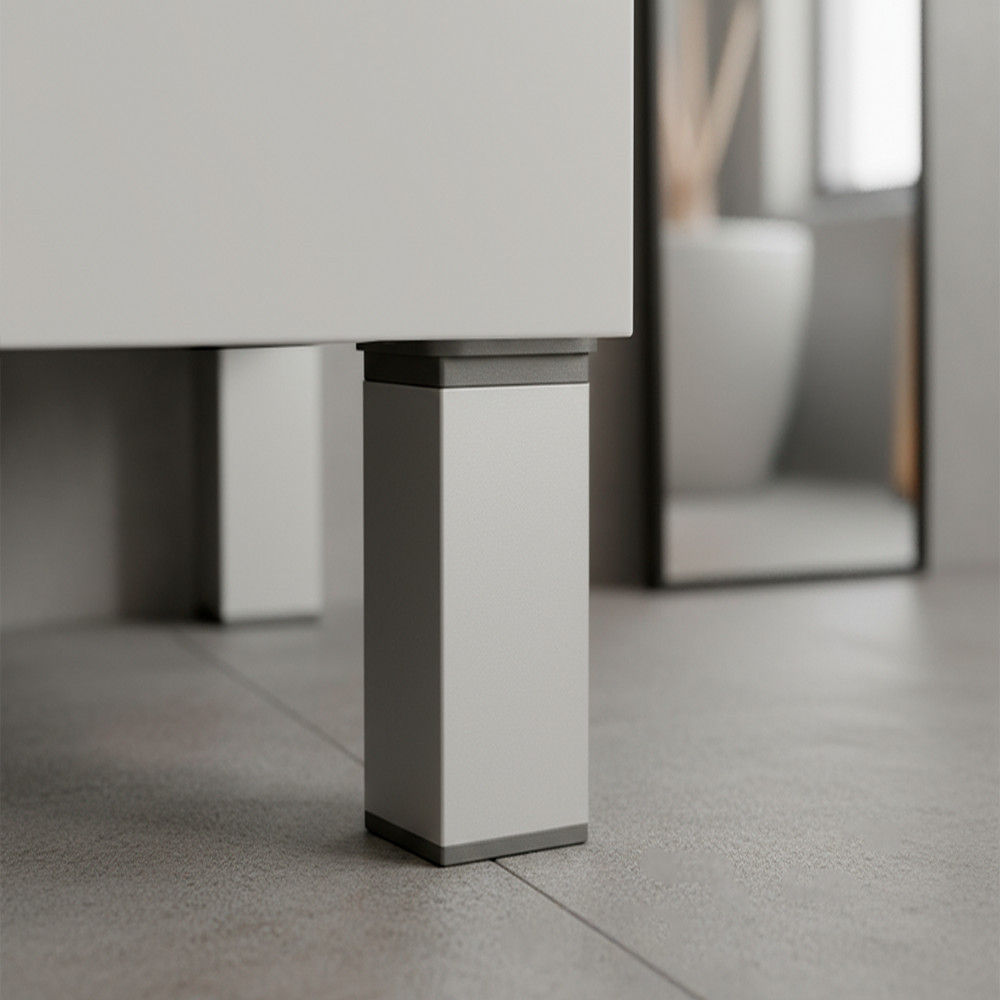 Az Uni bútorláb letisztult, modern formavilágával és ezüst felületével tökéletesen illik a mai kortárs bútorokhoz – legyen szó fürdőszobai szekrényről, komódról vagy konyhabútorról. A szögletes kialakítás stabil tartást és elegáns megjelenést biztosít, miközben diszkréten beleolvad a környezetbe.