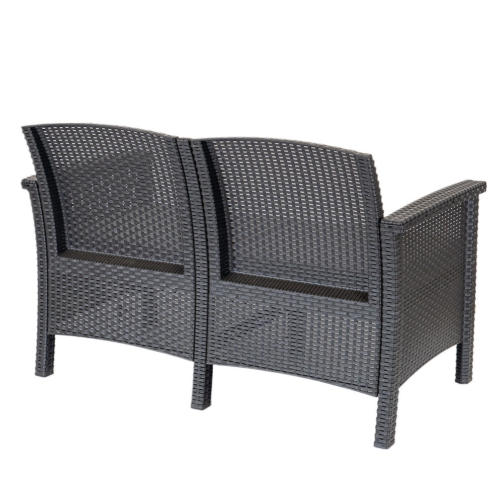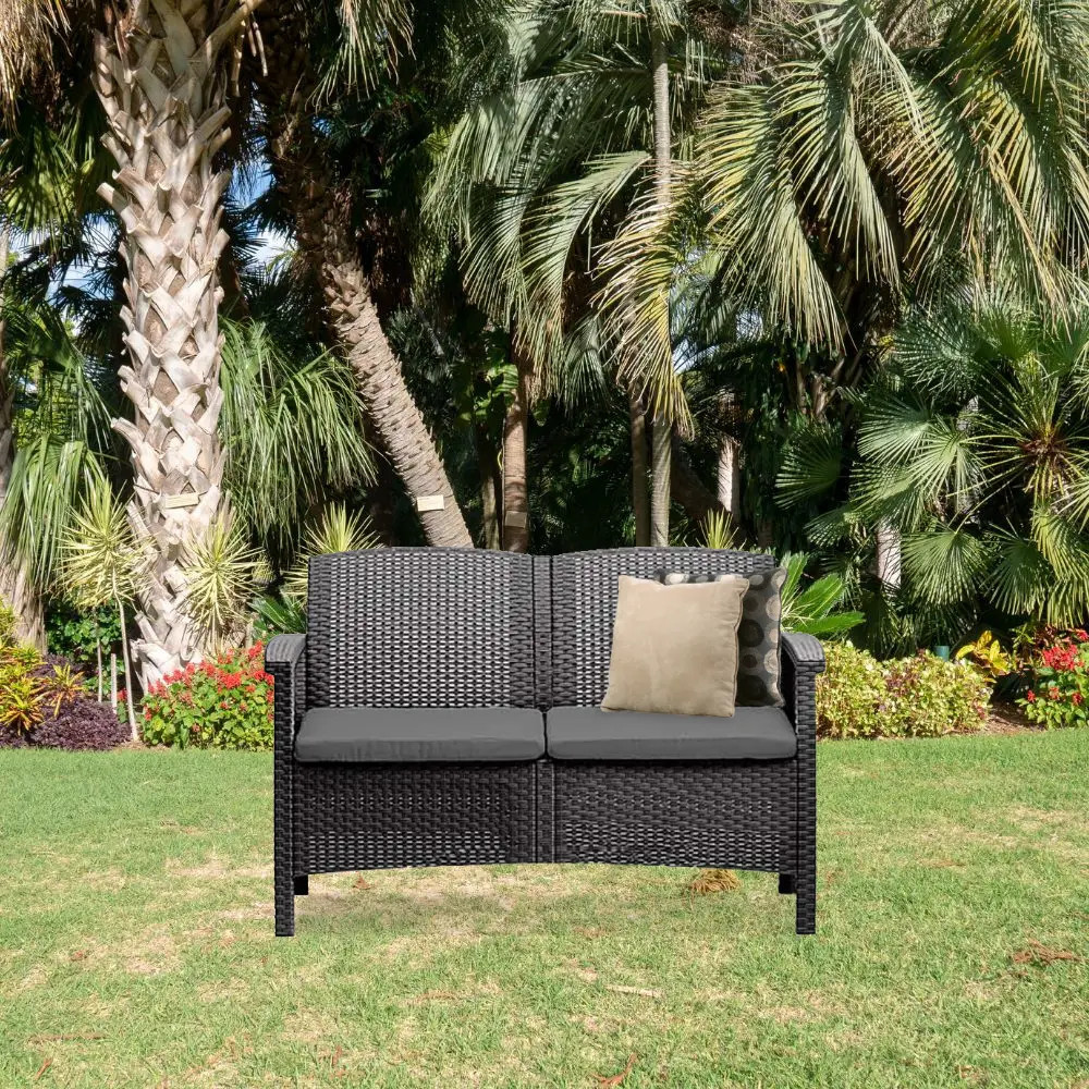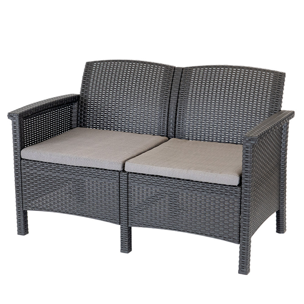 A 117 x 64,5 x 76 cm-es kanapé külső és belső használatra egyaránt alkalmas, mivel ellenáll az idõjárási viszonyoknak. Fontos eleme lesz a kerti vagy teraszi felszerelésnek, kettő szeméyl számára kínál ülőhelyeket, és a legmagasabb kényelmet biztosítja számukra. Ez a bútor praktikus, masszív, tartós és kivételesen esztétikus, ezért magán- és kereskedelmi helyiségekben is használható (pl. éttermek, szállodák, kávézók).