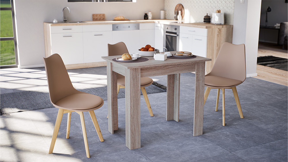 Az étkezőasztal méretei tökéletesen megfelelnek négy személyes étkezésekhez. Az 86 cm hosszúság és 60 cm szélesség, magassága 76 cm elegendő helyet biztosít.