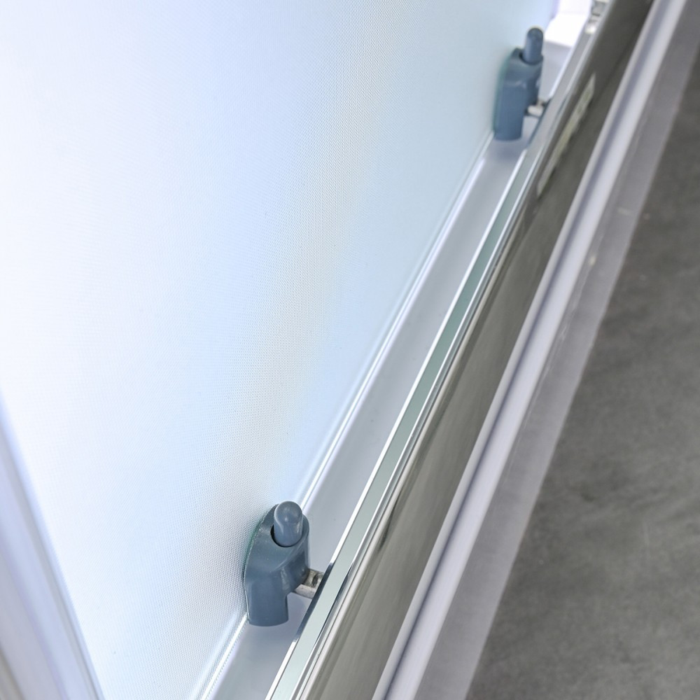 Az állítható fali profil rugalmas szerelhetőséget tesz lehetővé, így az esetlegesen nem teljesen függőleges falakhoz is pontosan illeszthető a kabin. A Spirit Matt modell akár 15 mm eltérést is képes korrigálni, így tökéletes megoldás régi vagy egyenetlen falazat esetén is. A felső és alsó sínek extra stabilitást biztosítanak, míg a vízvető profilok megakadályozzák a víz kiszivárgását. Ez a konstrukció különösen előnyös panel- vagy régi építésű lakásokban, ahol a falak gyakran eltérnek a szabványos derékszögtől.